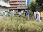 こちらは運動会前の環境整備です。学年花壇の草取りをしながら「虫、虫、虫」と興奮する3年生。大きなバッタを発見しました。