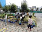 1年生が生活科で虫さがしに出かけました。学校の花壇や草むらではいろいろな虫を見つけていますが、今日は阪東橋公園にお出かけしての虫さがしです。とはいえ、都心部の学校から自然に恵まれた公園に歩いて行くことは難しく、マンションと高速道路に囲まれた都市型公園で虫さがしをします。