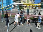 休み時間には校内のあちこちで運動会準備が進んでいます。プロジェクトに参加している高学年児童だけでなく、中学年、低学年の子どもたちも一緒になって作っています。「何だか分からないけど楽しそうだから一緒にやってみる」のがMYキッズのいいところです。