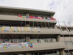 3校時は最後の全体練習です。開会式、閉会式、応援の練習をして最後の確認です。18の国や地域の旗が並んで入場します。今年の聖火点灯式をお見逃しなく。