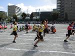 徒競走では全力ダッシュです。高学年のレスキュー綱引きは勝負がつかずに最終決戦に!