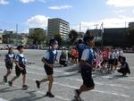 運動会を明日にひかえて今日は最後の練習です。各学年最後の仕上げに余念がありません。6年生は完成したソーラン節を5年生に披露しました。踊りを見た5年生からは「かっこよかった」「来年は自分たちもこんな風に踊りたい」など賞賛する意見がたくさん出されていました。5年生に囲まれた6年生は本番モードで真剣に踊ります。ブルーの法被は120周年記念に育友会に購入していただきました。ありがとうございます。明日はこのソーラン節で締めくくります。ご期待ください。