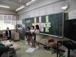 3校時は低学年の多文化共生授業です。今日は中国上海出身の先生が中国式リズム体操を教えてくれました。始めはゆっくりしたリズムなので簡単に思えた動きも、早くなるに連れて付いていくのがやっとです。最後は何が何だか分からない動きになって笑い転げる子どもたちでした。