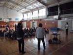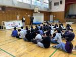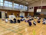 1,2時間目は横浜エクセレンスのスタッフの皆さんが来校し「防災バスケット」を行いました。バスケットボールの動きを生かして地震、火事、津波などから命を守る行動を起こす体験教室で5年生が参加しました。