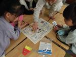 2年生はおなじく国語で学習した「スーホの白い馬」の世界を体験します。馬頭琴の音に合わせてモンゴルの草原の映像が流れ物語の世界に浸りました。その後はモンゴルのすごろくで楽しく盛り上がりました。講師の先生、みなみラウンジの皆様ありがとうございました。