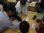2校時に3年生が韓国文化の体験教室を、3校時には2年生がモンゴル文化の体験教室を行いました。3年生は国語で学習した三年峠の韓国語による読み聞かせを聞き大笑いしました。日本語と韓国語は似た音韻の言葉も多く、ストーリーも頭に入っているのでとても楽しく聞くことができました。続いて韓国の食文化のお話しを聞き、最後は韓国の遊びを体験して盛り上がりました。神奈川韓国綜合教育院の先生方ありがとうございました。