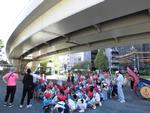 横浜橋通商店街を練り歩く神輿。担ぎ手には卒業生もたくさんいます。お囃子には小学生も参加しています。地域の皆様お疲れ様でした。