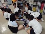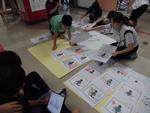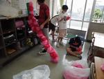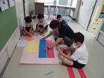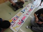 休み時間には校内のあちこちで運動会準備が進んでいます。プロジェクトに参加している高学年児童だけでなく、中学年、低学年の子どもたちも一緒になって作っています。「何だか分からないけど楽しそうだから一緒にやってみる」のがMYキッズのいいところです。