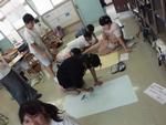 昼休みもMYスポ準備です。図工室では120周年ロゴの制作、ホールでは応援団の話し合いと休み時間返上で真剣に取り組む子どもたちです。