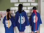 今朝のMYスポ集会では、放送プロジェクトの司会で、学年競技や演技の紹介がありました。6年生は120周年記念関連で新たに購入した法被を披露。背中には南吉田小の校章がデザインされています。当日はこれを着てソーラン節を踊ります。