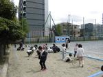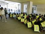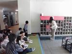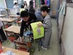 在校生が下校したあとは入学式です。9:35からの受付を目指してランドセルを背負った新1年生が保護者の方と一緒に登校します。正門では交通安全母の会の方がお出迎えです。受付を済ませた子どもたちを6年生が教室に案内したり、ランドセルの置き場所を教えてあげたりとかいがいしく働きます。中にはゲームで遊んであげる6年生もいて早くも人気者になっていました。
