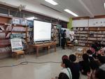 近くの保育園の年長さんが、学校に来てくれました。図書室で学校司書の先生から読み聞かせをしてもらって、そのあと自分たちで好きな本を読みました。