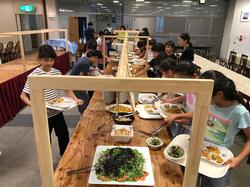 夕食はバイキングです。好きなものをバランスよく、オリジナルのプレートをうまく作っています。