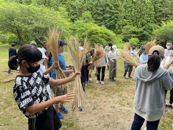 とうかんや体験 藁鉄砲づくり開始です。