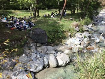 お弁当を食べて、午後からは道志村渓流フィッシングセンターで、ニジマスのつかみどり・魚釣りです。