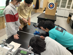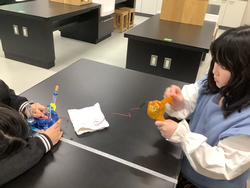 理科クラブでは、水素ロケットを発射させて、的に当てる活動をしました。