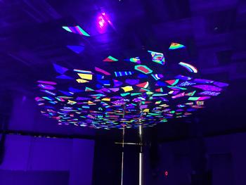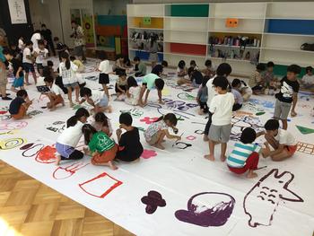 特殊な絵の具を使いブラックライトを当てて鑑賞したり、床いっぱいの紙に絵を描いたりと、充実した活動ができました。