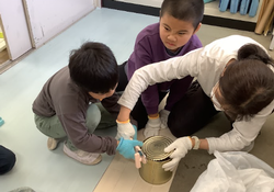 峯の子祭に向けて、缶に穴をあけたり看板の色塗りをして準備をしました。試しに自分たちでコースを歩いて、より面白くなるように工夫もしました。当日は沢山の方に遊びに来ていただき、ありがとうございました。子どもたちもとても喜んでいました。