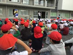 港北区交通安全課の方と、港北警察署の方、マーメイズの方々、マリノスケが箕輪小学校に来て、はまっ子交通安全教室を行いました。