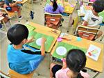 3年生の教室では、社会科「まちたんけん」で回ってきた箕輪のまちを大きな地図で振り返っていました。方角によって特徴があることに気づくことができました。