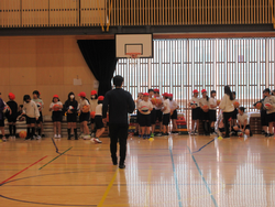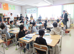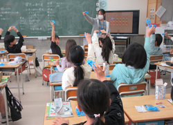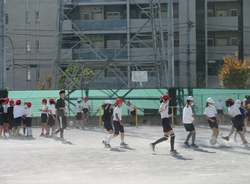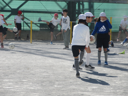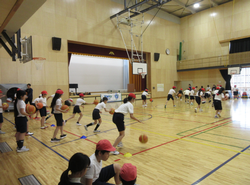 バスケットボールでは横浜・ビーコルセアーズの方が来校し、教えていただきました。サッカーでもバスケットボールでも、いきいきと練習に参加する5年生。当日の交流は技術を競い合うだけでなく、心の交流もしてもらえたらと思います。