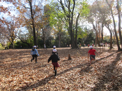 2年生は、日吉の丘公園にでかけました。本校は新校舎増築の工事中で校庭が半分になってしまっています。「子どもたちに広い場所で思いっきり心と体を開放する体験をさせてあげたい」そんな教師の思いから生まれた今回のこの活動。
