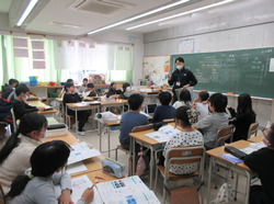 実際にはしご車を見学したり、お話を伺ったりしている中、子どもたちのメモ用紙はどんどんうまっていきます。さらにはキラキラとした目で何度も何度も質問する子どもたち。こういった機会を大切にしていきたいものです。同時に、学習に協力してくだざる、あたたかい地域の方々に支えられていることを子どもたちが感じる良い機会にもなりました。