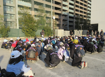 20日火曜日には避難訓練が行われました。この日は中休みの時間に火事が起きたという想定です。