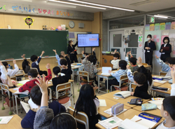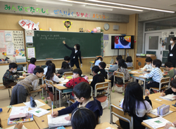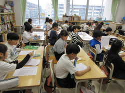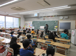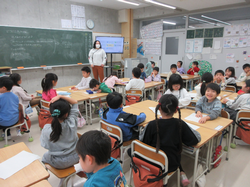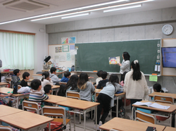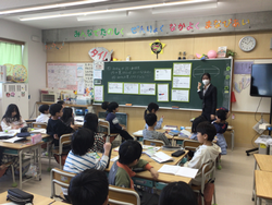 箕輪小学校では横浜国立大学と連携し、未来の先生の育成に協力しています。週に1日、学校に来校し、授業を見学したり子どもたちと交流をしたりしています。この日は3人の学生による授業です。2年生の教室で3人の「先生」が授業をしました。