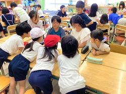 水曜日は読み聞かせでした。夏休み明け最初の読み聞かせ、本の世界に引き込まれている子どもたちでした。大型絵本や紙芝居を楽しんでいるクラスもありました。