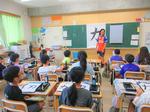第2回の国際理解教室の様子です。今回はネパールの学校生活について、日本の様子と比べながら楽しく学んでいきました。ネパールで親しまれているこま遊びも体験しました。