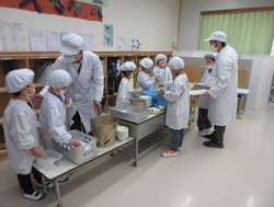 木曜日は、特別教室カーテンの洗濯でお世話になっている、かたるべ会の皆さんと、3年生のクラスが給食で交流しました。