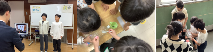 全教室に放送で配信して説明したのち、前年度のほたる委員が各クラスにほたるの幼虫とえさのカワニナを届けました。