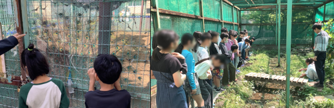 本校の特色である生き物の飼育、クジャクの「ピース」とほたるを紹介します。