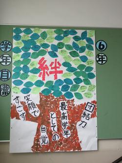 第6学年の学年目標は「絆 団結力 高学年の自覚 笑顔ですごす」です。