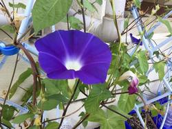 中休み、校庭の暑さ指数WBGTは危険値31を上回っていて、天気は良くても子どもたちは内遊びをしています。今年もミストを準備しましたが、子どもたちを涼しくするための活躍の場はまだあまりありません。その横では、1年生のアサガオが花を咲かせていました。