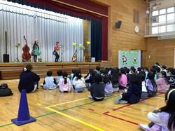 Everlyさんは、毎年500校を超える学校を回っているそうです。音楽の楽しさを追求し、伝え続けることをモットーとしているそうです。「トルコ行進曲」「ルパン三世のテーマ」「カノン」など、子どもたちもよく知っている曲を中心に演奏してくれました。また、聴くだけでなく、簡単なダンスや手拍子などで子どもたちも、一緒に演奏に参加しました。最後は、森の台小学校の校歌をみんなで歌いました。短い時間でしたが、とても楽しい時間となりました。