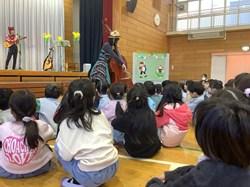 保育園の園児さんと一緒に音楽イベントを行いました。ギターやコントラバスなどを使った演奏や歌を楽しみました。劇にそって、いろいろな曲が流れ、とても楽しそうに聞いていました。1年生の音楽集会で歌った「きらきらぼし」や「せかいじゅうのこどもたちが」も演奏してくださり、みんなで歌いました。