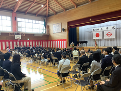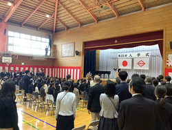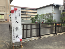 本日は入学式が行われました。初めての学校、初めての教室にちょっと緊張気味の新入生でしたが、「さんぽ」の曲に合わせて元気に入場してきました。校長先生からは、学校生活で大切にしてほしい「あ・い・う・え・お」のお話がありました。担任の先生の発表もありました。優しそうな先生方で、少し安心できたようです。1年生のみなさん、少しずつ学校生活に慣れていってください。