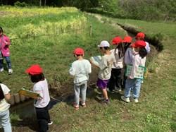 また、教室にもどってから、四季の森公園の周辺を地図で確認しました。四季の森公園、神奈川大学の敷地、ズーラシアと森がつながっていることに気が付きました。広大な自然が残されていることが分かり、子どもたちは、とてもおどろいていました。