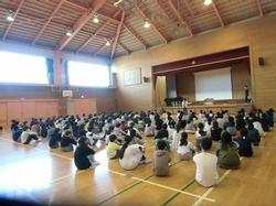 6年生は、体育館で学年集会。最高学年としての自覚を高め、小学校生活最後の一年を有意義に過ごそうという気持ちをもちました。