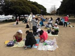 とてもよい天気の中、四季の森公園に出かけました。1~6年生までの縦割り班で行う「ふれあいピクニック」です。昨年までは、6月に出かけていましたが、今年から時期を11月に変更しました。年間通したふれあい活動で、交流を深め仲よくなってから遠足を楽しみたいという思いが込められています。