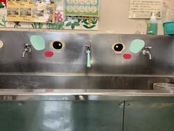 5年生が校内のあちらこちらで、活動をしていました。「場所の形や色を生かして、その場所を大変身させる」図工の学習です。校内が、まるで美術館のようになりました。
