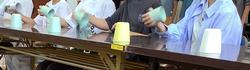 給食委員会が中心となり、給食の「のり」のパッケージデザインを募集しました。今回もかわいいデザインがたくさん!子どもたちの投票によって、デザインを決めます。