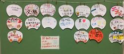 教室では、応援に使う「応援うちわ」の作成にとりかかっています。自分の思いをうちわにかきます。