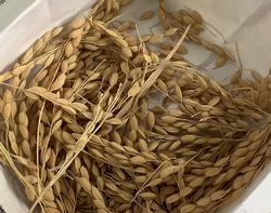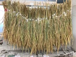 稲刈りが終わったあと、今は教室で穂を自然乾燥させています。だいぶ茶色になってきました。稲のよいにおいがします。