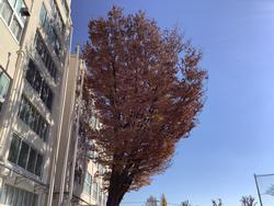 元小のシンボルツリーのケヤキが紅葉し、葉を落とすようになりました。