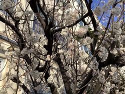 校舎沿いに、セイヨウミザクラの木があります。少し前から花が咲き始め、今、満開です。