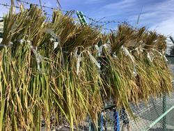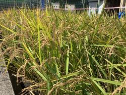 5年生が、春から大切に育ててきたイネが、収穫の時期を迎えました。稲穂の頭がしっかり垂れています。