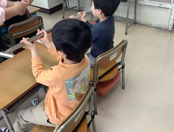 ワクワクドキドキの学校生活が始まりました。生活科の学習として学校探検、春の植物や生き物を探しに行きました。また、給食についての話を聞いた後には、実際に使用しているヘラを持つ体験を行いました。新しい発見に子ども達は興味津々でした。